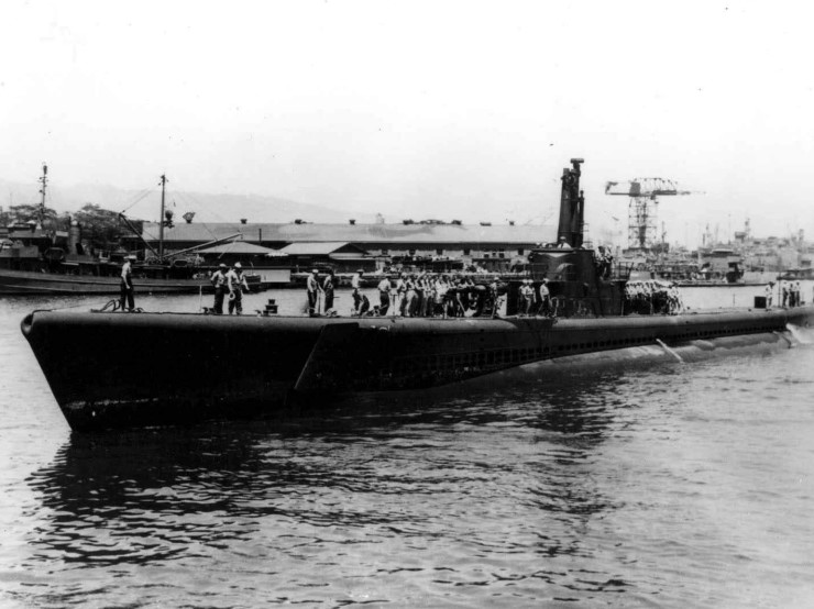 October 24, 1944: The USS Tang SS-306 sank off Turnabout Island near Taiwan. One of the most successful boats of the war, Tang's last victim was herself. The last torpedo in a spread of four fired circled around and hit her in the stern. Only nine men were able to get out of the stricken sub, she took the other seventy eight to the bottom with her. The nine who survived were picked up by a Japanese destroyer escort the next day. When the people on board learned the identity of the Americans they beat them unmercifully as some of them had been victims of the Tang's torpedoes. After the war Capt. O'Kane said of those who were torturing them, "When we realized that our clubbing and kicking's were being administered by the burned, mutilated survivors of our handiwork, we found we could take it with less prejudice." O'Kane was later awarded the Medal of Honor. O'Kane and the eight others remained POW's in Japanese hands for the rest of the war. |