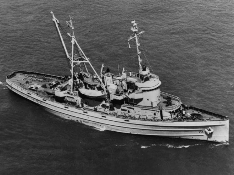 While not glamorous ships fleet tugs are a vital part of any navy. Without them and the men who sail them many a ship and sailor would not have returned home. Sometimes however they become the target. On Aug. 27, 1952 the USS Sarsi ATF-111 was the victim of a drifting mine off the Korean coast. Sarsi was built in 1943 and served in the freezing cold of the Aleutians during World War 2. Following the war she was sent to warmer waters off California and even operated off Panama and Hawaii. She was back in the Aleutians in 1952 for a brief period before returning to San Diego and finally to Korea. During the Korean War she operated between Korea and Japan transporting supplies and performing salvage, towing, patrol and escort duties. It was during her patrol off Hugnam, Korea that she hit a mine. It is thought that the mine had been dislodged during the typhoon that hit on the 20th as the area she was operating in had been swept earlier. The Sarsi sank 20 minutes later taking five men with her. Those who survived were not picked up until the following morning. |
