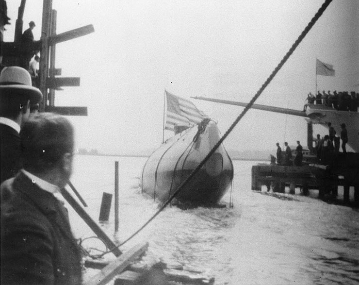 Launch of the Holland submarine at Elizabethport, New Jersey. |