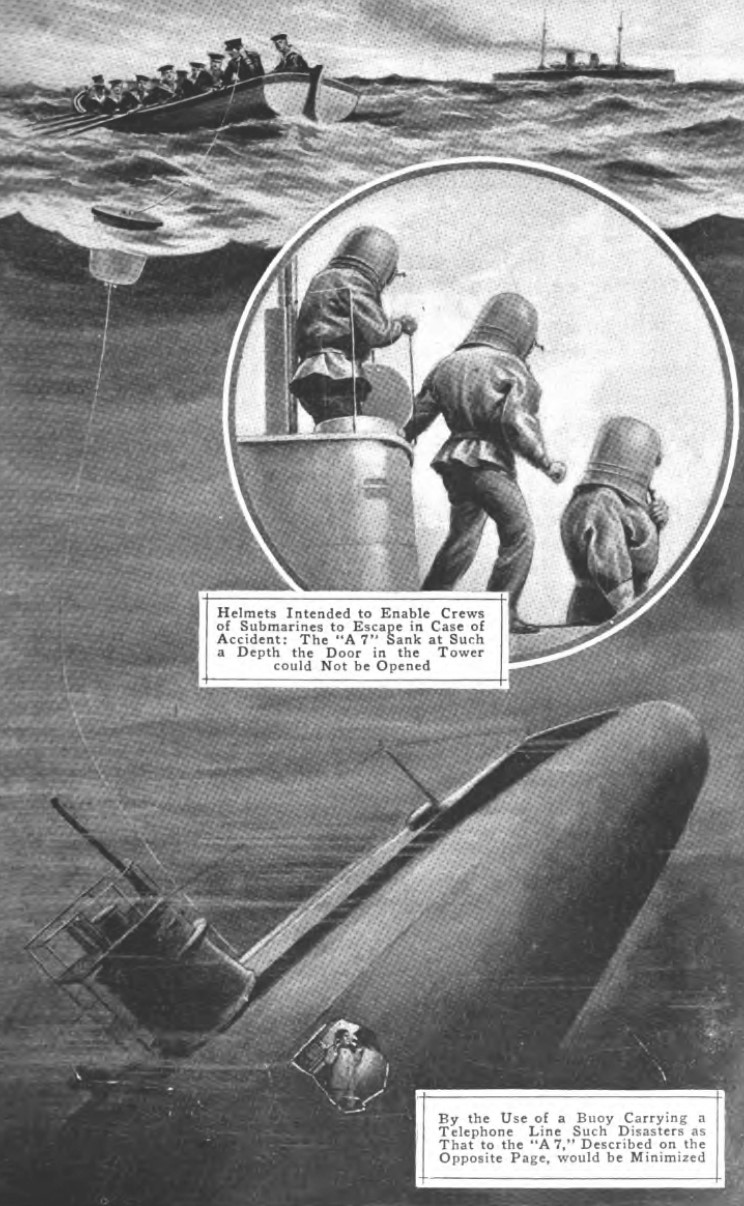 April 1914 image from Popular Mechanics magazine showing the wreck of HMS A-7.