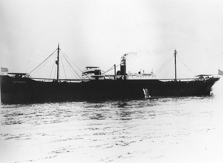 The cargo ship William A. McKenney was built at Newport News Shipbuilding in 1916 and served with the U.S. Navy as USS William A. McKenney ID-2101, the ship survived the Great War and made it into the next one. The ship was en route from Trinidad to Mobile, Alabama late in the evening when she was hit by an unannounced torpedo on her port side. The explosion damaged the steering gear and made the ship uncontrollable, it also destroyed the aerials so no distress signal could be sent. As the crew were abandoning the ship the aggressor, U-175, began shelling the ship, hitting her six or seven times and setting the fuel ablaze. After the crew got off the ship U-175 continued to shell her and she finally sank in the early morning hours of October 5, 1942. The thirty-four men in the two lifeboats were lucky in that they were picked up later that day by USS Blakeley DD-150, a ship which had only recently returned to duty after having her bows blown off by a torpedo fired by U-156 on May 22, 1942. One man perished sometime during the action. U-175 returned to France and during her next cruise was sunk by USCG Spencer south of Ireland, her commander Korvettenkapitän Heinrich Bruns, who had been her only commander, and twelve others perished in the loss. |