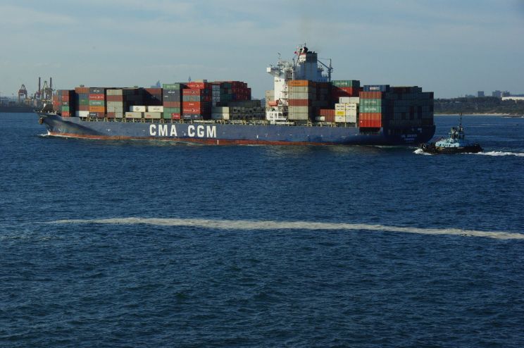 September 18, 2010: ANL Warrain seen arriving at Port Botany, Sydney, Australia. An unidentified tug is seen passing astern. |