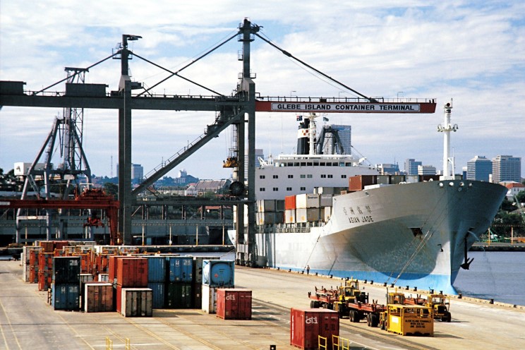 The container ship Asian Jade seen in 1981 at the Glebe Island container terminal, Sydney, Australia. |