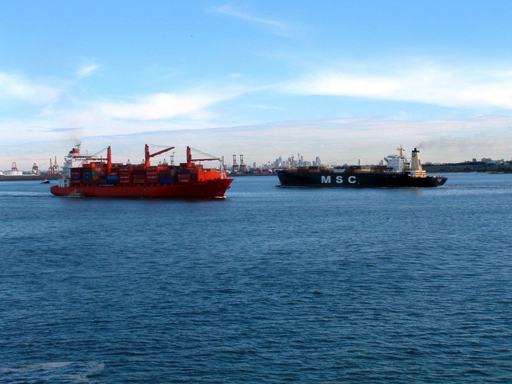 February 6, 2008: The Cap Preston departing Port Botany, Sydney, Australia, passing the MSC Alpana in the channel. |