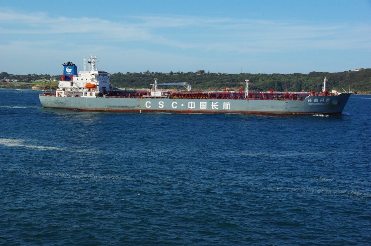 September 18, 2010: Chang Hang Kai Tuo seen departing Port Botany, Sydney, Australia. The container ship ANL Warrain and the tanker BRO Caroline are seen in the background. |