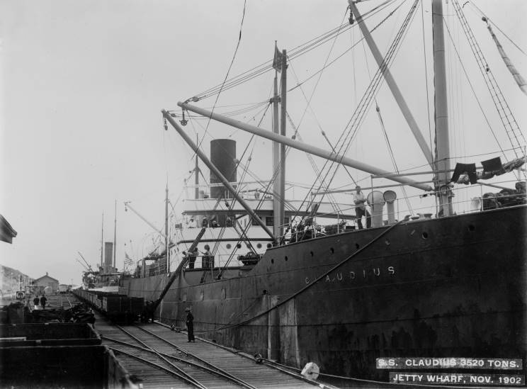 Claudius seen in Nov. 1902. An unidentified American ship is seen in the background.