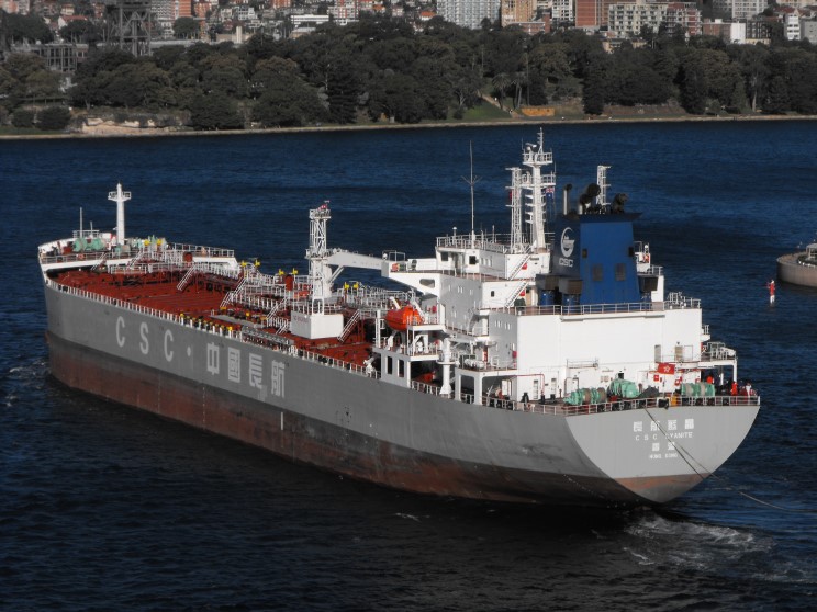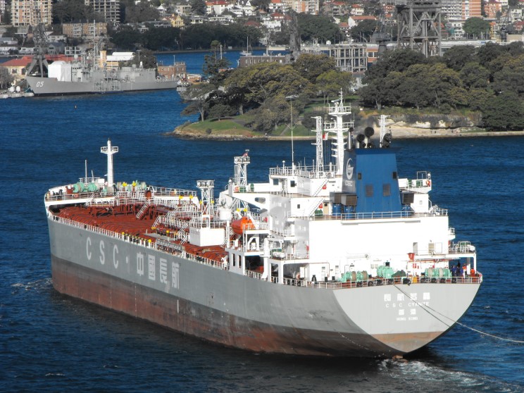 July 2, 2009: CSC Cyanite seen from the Harbour Bridge departing Sydney, Australia. |