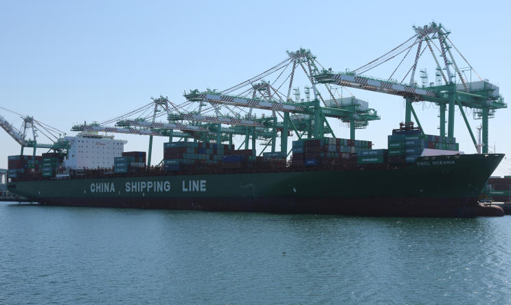 July 28, 2012: CSCL Oceania seen at Los Angeles, California. |