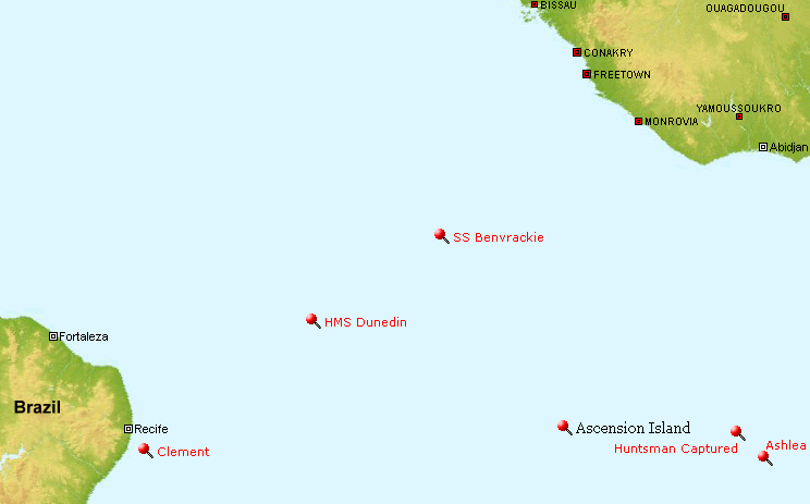 Sunk May 13, 1941 by U-105 (torpedo). Location: North Atlantic 718 miles southwest of Freetown, Sierra Leone. (00.49N - 20.15W) 15 crewmen and 15 survivors from the SS Lassell who were on board were killed. 55 (or 58) survivors were picked up May 26 by HMHS Oxfordshire and landed at Freetown. |