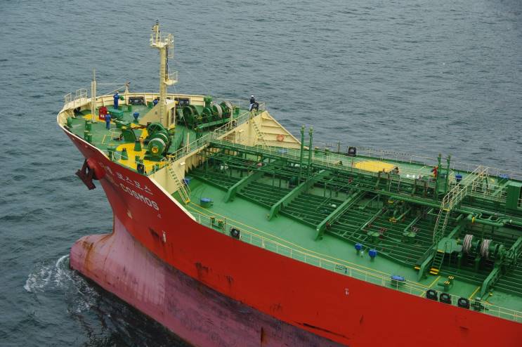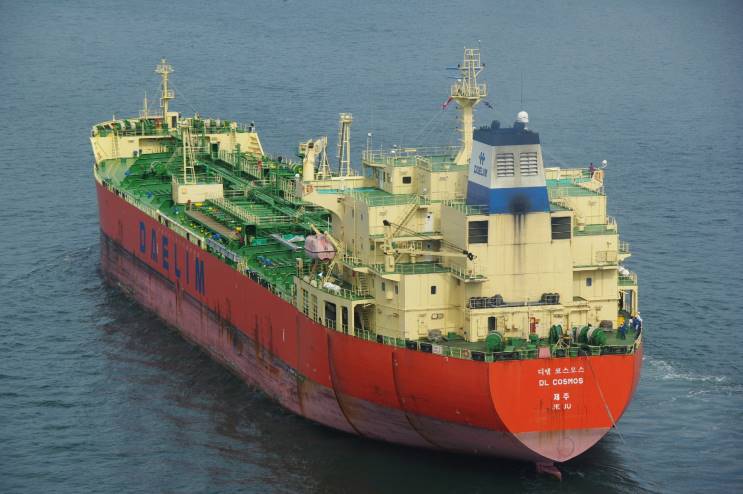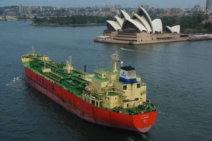 | October 29, 2011: DL Cosmos seen from the Harbour Bridge departing Sydney, Australia. |