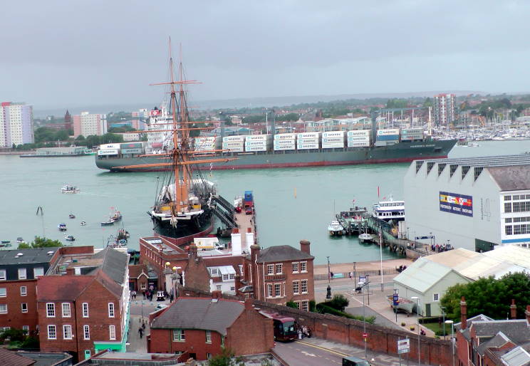 September 7, 2017: Hammonia Husum seen departing Portsmouth, England. HMS Warrior is seen in the foreground. |