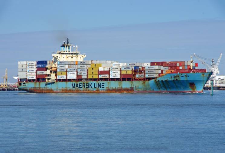 April 16, 2022: Maersk Bintan seen in Hobsons Bay approaching the mouth of the Yarra River en route to Swanson Dock, Port Melbourne, Victoria, Australia. |