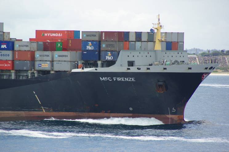 February 9, 2011: MSC Firenze seen departing Port Botany, Sydney, Australia. |