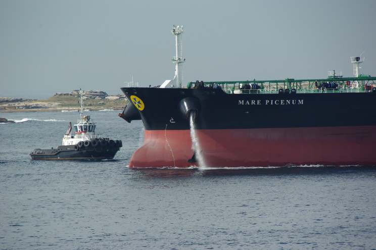 May 11, 2011: Mare Picenum seen raising anchor to proceed into Port Botany, Sydney, Australia. |