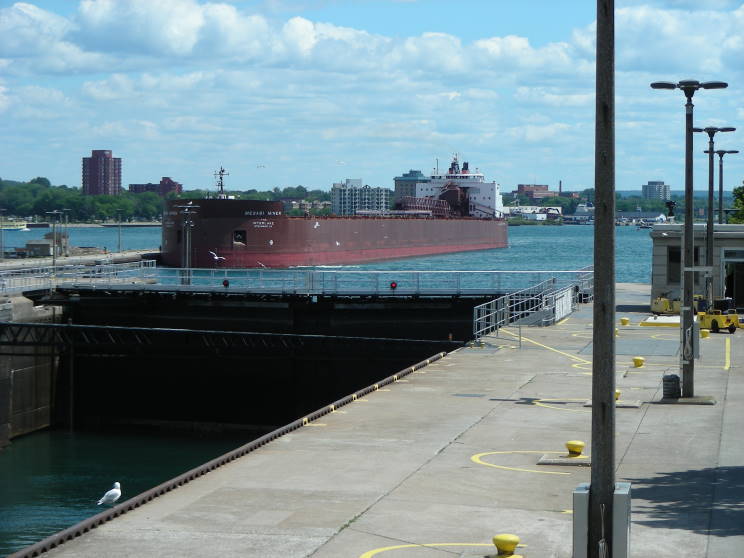 July 21, 2013: Mesabi Miner seen approaching the Soo Locks, Sault Ste. Michigan. |