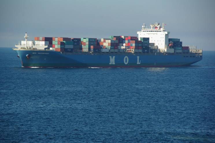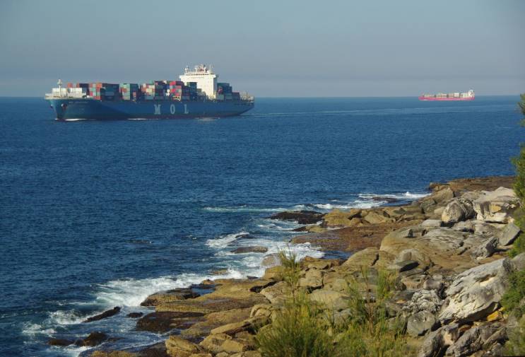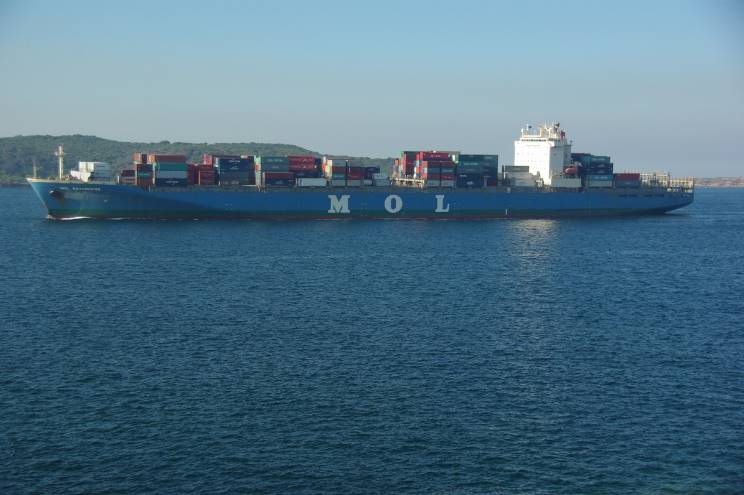 May 20, 2011: MOL Enterprise seen arriving at Port Botany, Sydney, Australia. JRS Brisbane is seen in the background. |