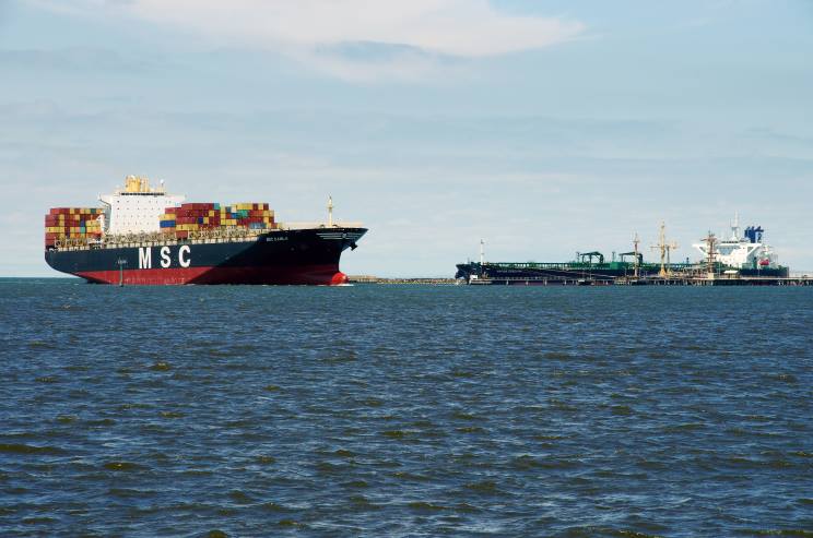 February 7, 2017: MSC Damla seen arriving at the mouth of the Yarra river, Victoria, Australia. The tanker Navig8 Sanctity is seen in the background. |