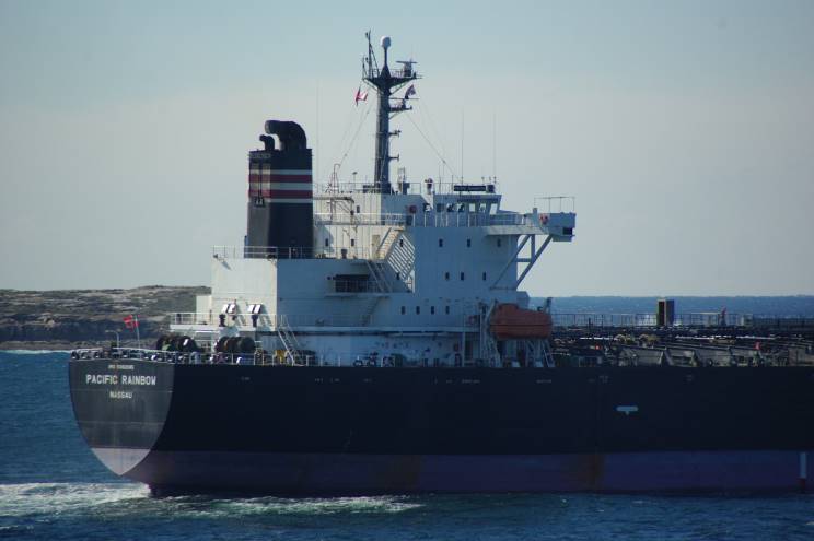 August 8, 2011: Pacific Rainbow rounding the breakwater departing Port Botany, Sydney, Australia. |
