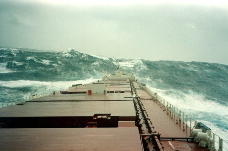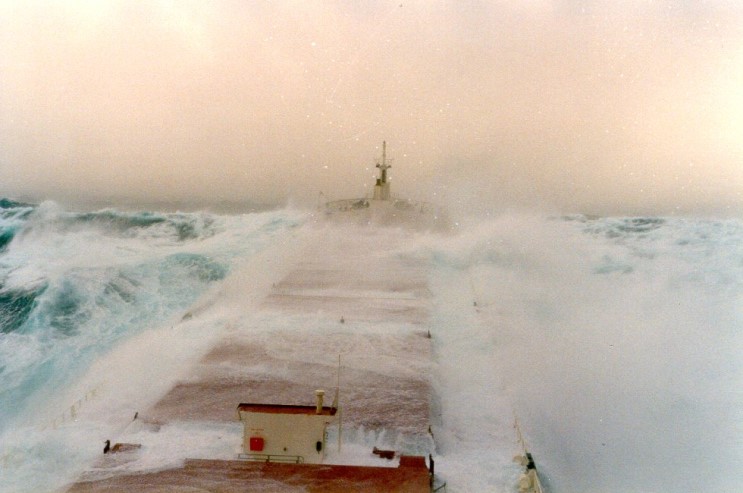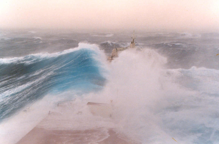June 2007: Pasha Bulker seen in heavy seas reportedly just before going aground at Newcastle, Australia. |