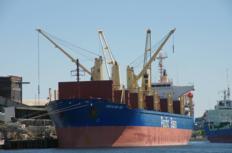 December 1, 2018: Portland Bay seen at Yarraville berth 5, Yarraville, VIC, Australia. Golden Sky is seen at right. |