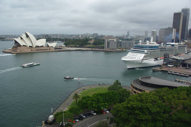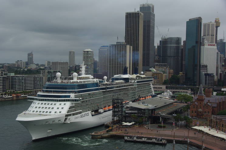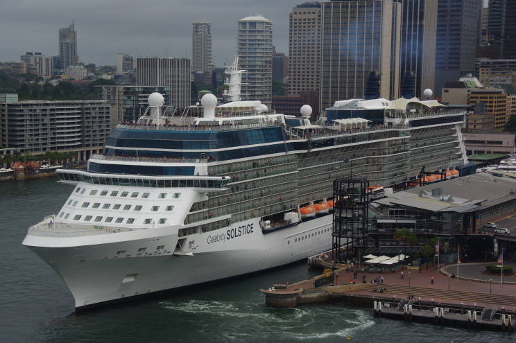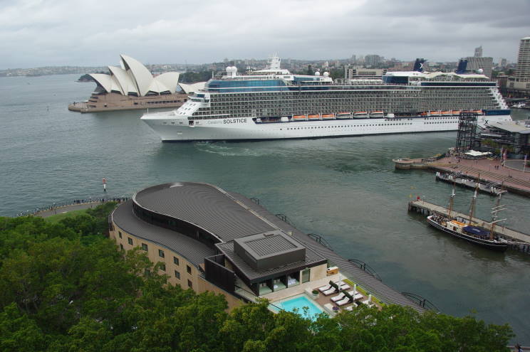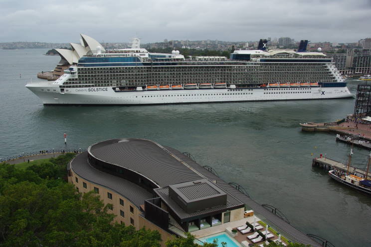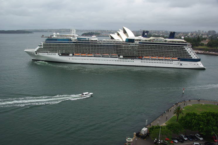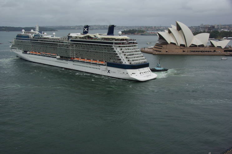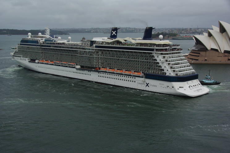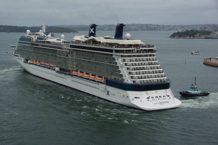 December 11, 2012: Celebrity Solstice seen getting underway at Sydney, NSW, Australia. The tug PB Endeavour is seen astern. |
