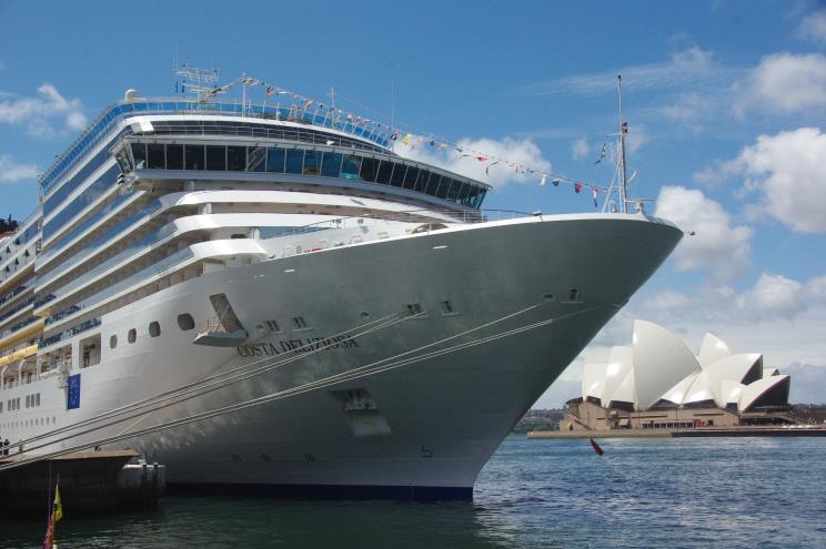 February 21, 2012: Costa Deliziosa seen at the Circular Quay, Sydney, Australia. The Sydney Opera House is seen in the background. |