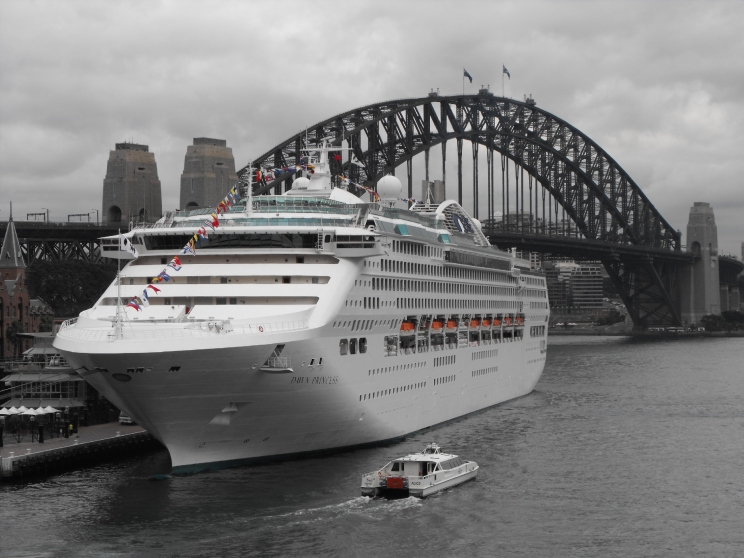 October 1, 2010: Dawn Princess seen at the Circular Quay, Sydney, Australia. The Harbour Bridge is seen in the background. |