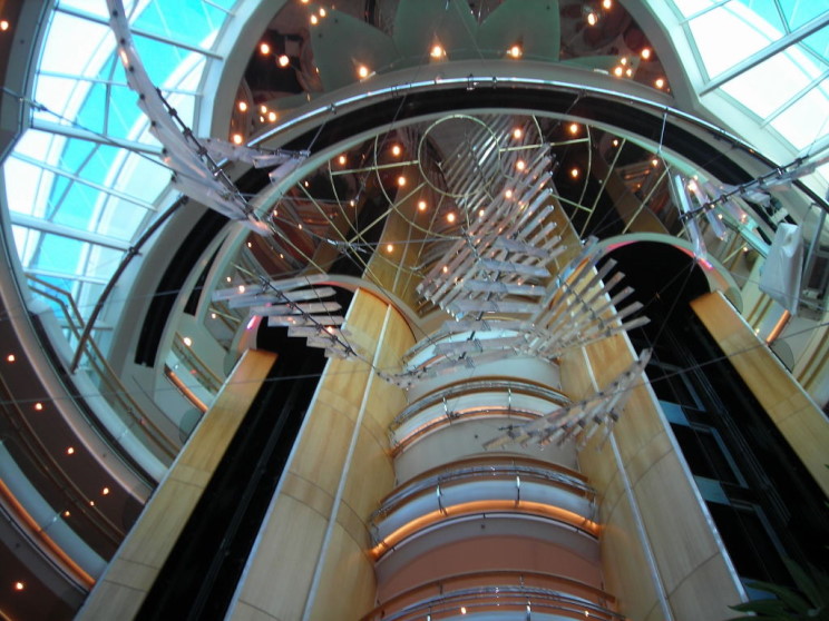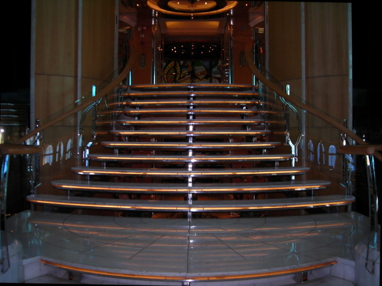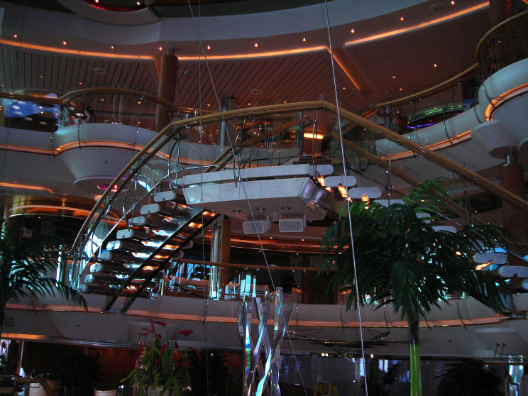 The grand staircase on the Enchantment of the Seas.
