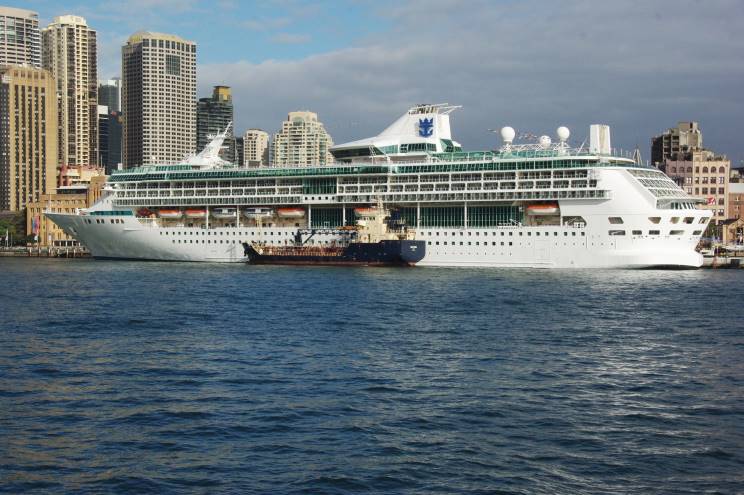 June 11, 2015: Legend of the Seas seen at the Sydney Cove Passenger Terminal at the Circular Quay, Sydney, NSW, Australia. The bunkering tanker Anatoma is seen alongside. |