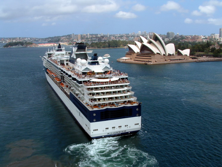 December 8, 2008: Millennium seen from the Harbour Bridge passing the Sydney Opera House.