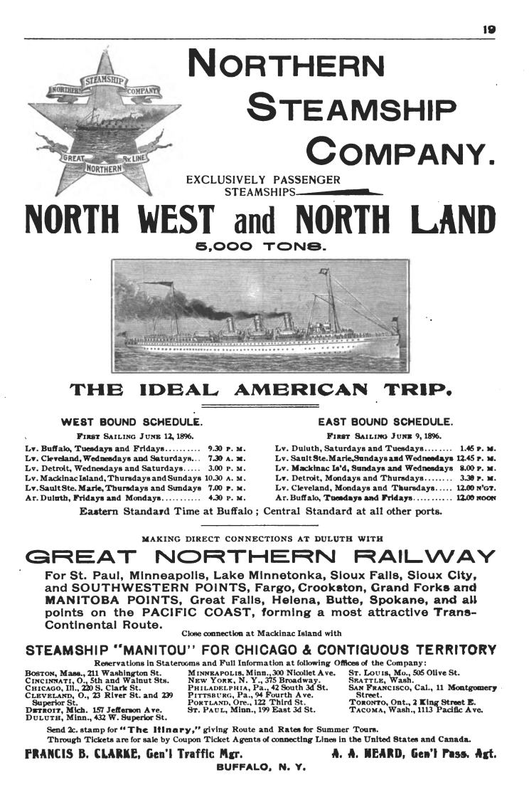 1896 advertisement from the Northern Steamship Company. |