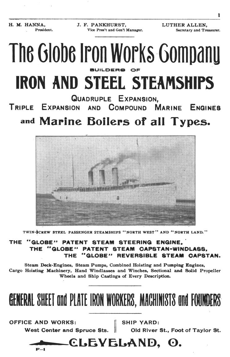 1896 advertisement from Globe Iron Works, the ship's builder. |