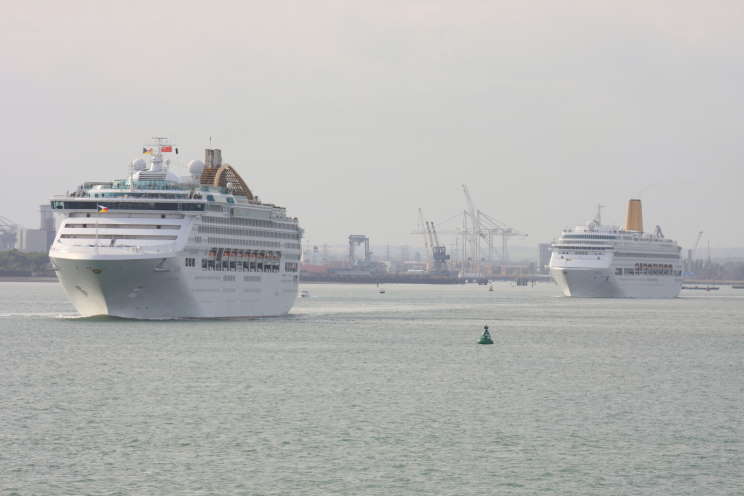 May 9, 2009: Oceana (left) and Oriana seen departing Southampton, England. |