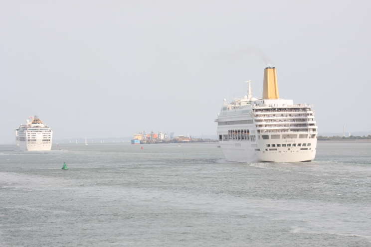 May 9, 2009: Oceana (left) and Oriana seen departing Southampton, England. |