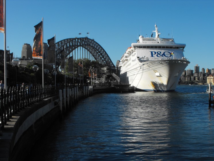 March 17, 2010: Pacific Sun at the Circular Quay, Sydney, Australia. The Harbour bridge is seen in the background. |