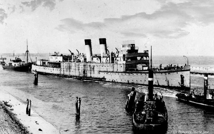 Aug. 8, 1937: Princesse Marie-Jose after being run aground 4 kilometres out of Dunkerque by her Captain, George Timmermann, following a collision with Clan MacNeil. Aug. 8 1937. Refloated Aug. 11, 1937 |