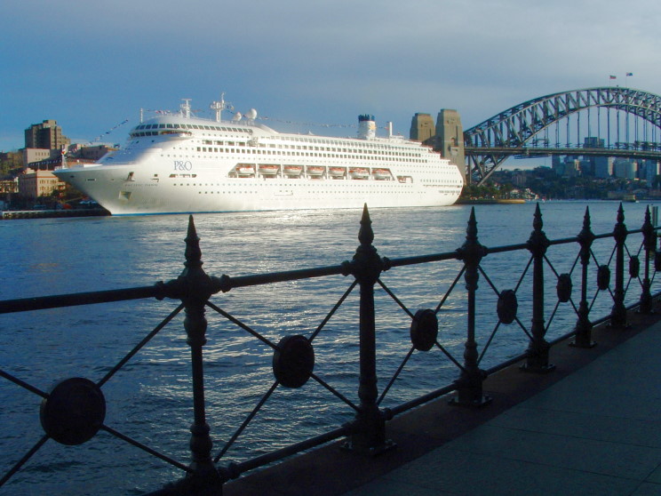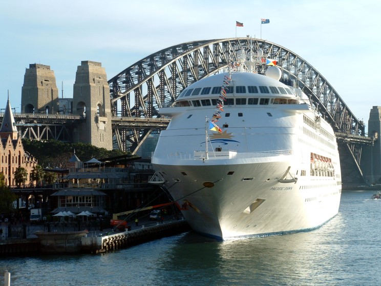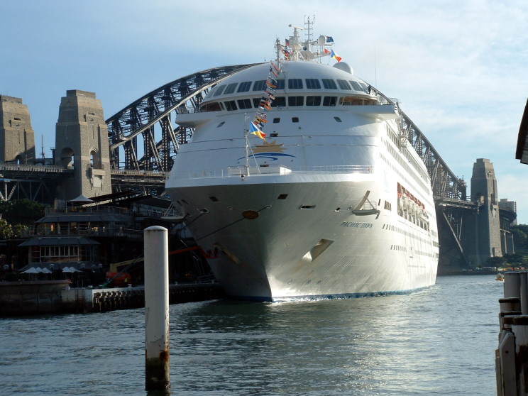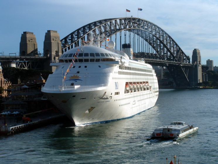 July 10, 2008: Pacific Dawn at the Circular Quay, Sydney, Australia. The harbour bridge is seen in the background. |