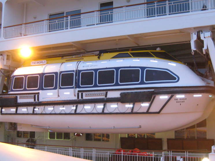 August 16, 2011: Close-up of lifeboat #1 on The World. |