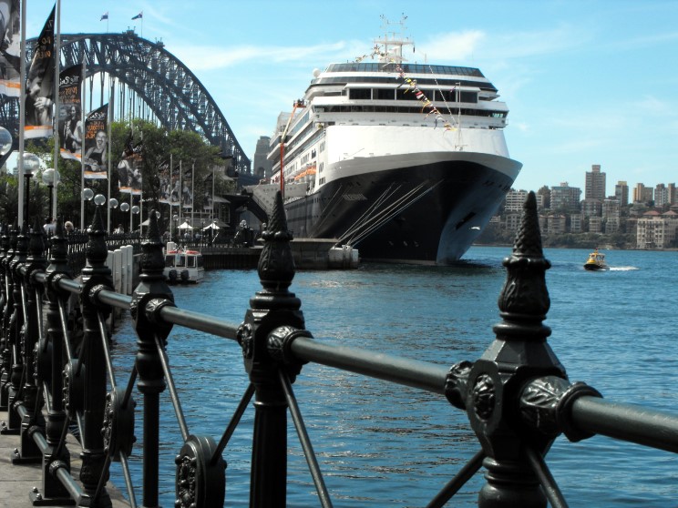 March 19, 2009: Volendam at the Circular Quay, Sydney, Australia. The Harbour Bridge is seen in the background. |