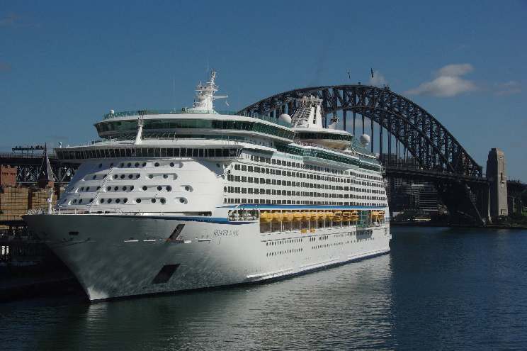 January 6, 2013: Voyager of the Seas seen departing Sydney, NSW, Australia. The tug PB Endeavour is seen astern. |