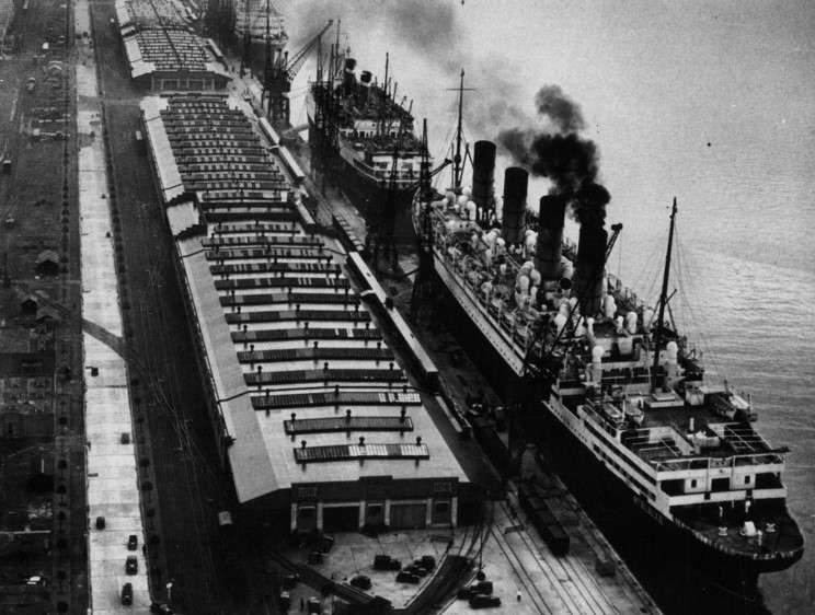 September 4, 1945: Aquitania arriving at Southampton, England. |