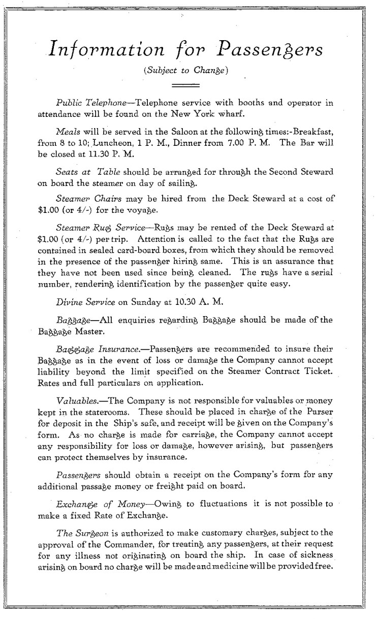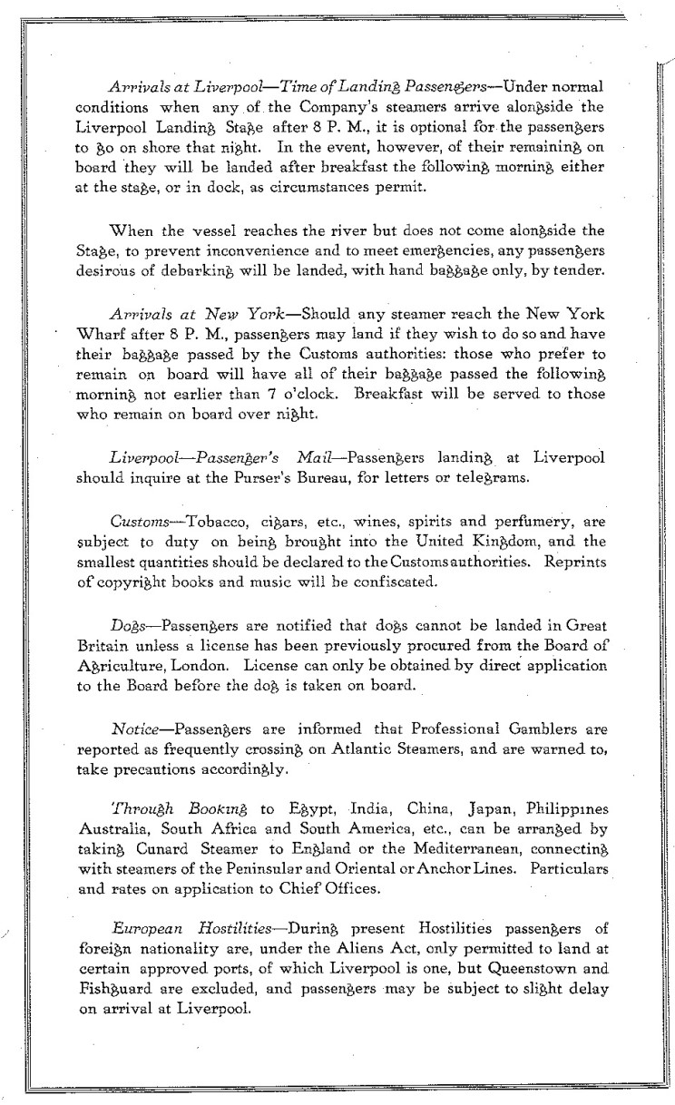 Aquitania Passenger Handbook |