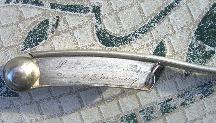 1. Mar. 10, 2008 I have a bosun's pipe from the USS Harrisburg. It has been scratched to remove the name of the seaman but the name of the ship is easily seen. I am looking for a list of crew to identify the bosun before putting the pipe on eBay. From looking at the pipe, it looks like the first initial of the name of the Bosun started with a "S" and the last name might start with a "T" or an "F". I wondered if such a list exists and how I might locate it. Thanks in advance for any help you can provide. Your site has been very useful and it is well done. Thanks, Larry Howers |