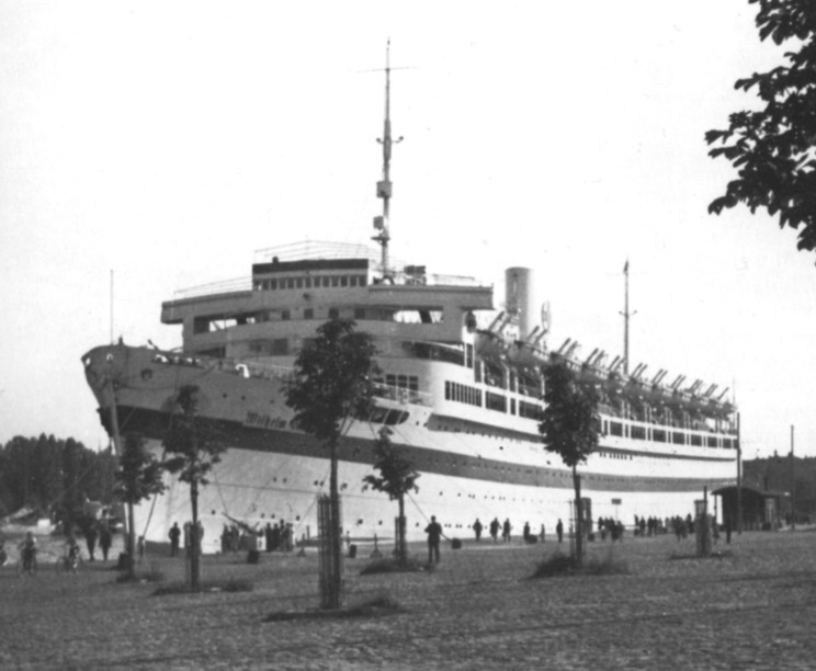 Wilhelm Gustloff in Gotenhafen (Gdynia), Poland in 1942. Gotenhafen would be the last port the Wilhelm Gustloff would sail from. |