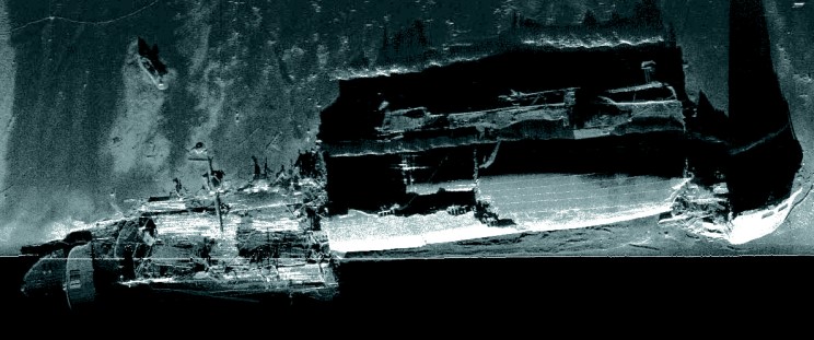 Sidescan sonar image of the wreck of the Wilhelm Gustloff. |