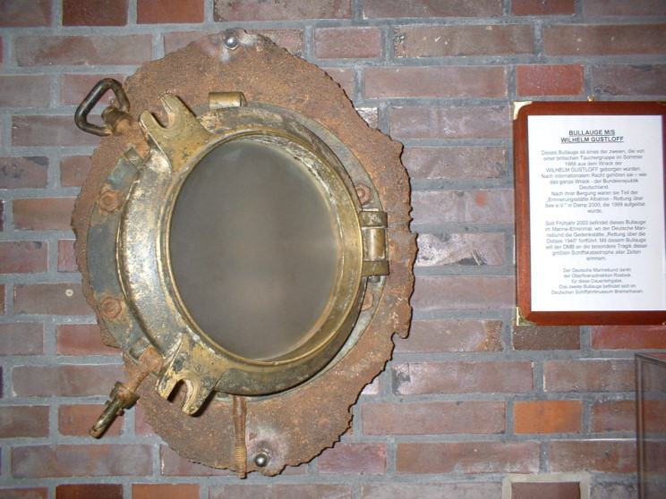 A porthole recovered from the wreck of Wilhelm Gustloff on display at the