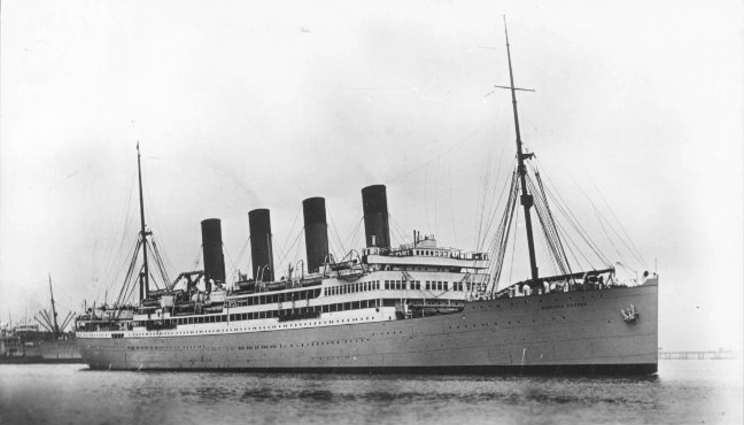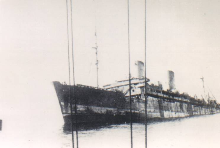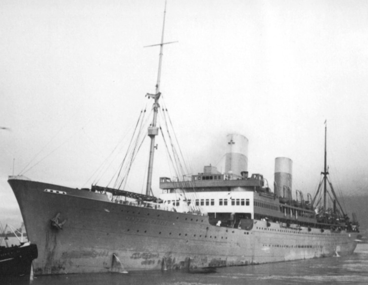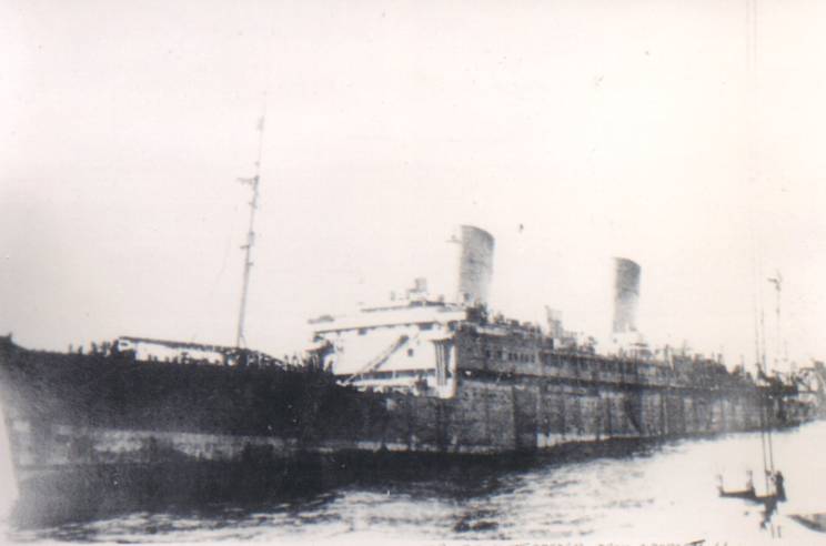 HMT Windsor Castle while being converted into a troopship. (Note only 2 funnels and the new raked bow which was installed in the 1937 refit.) |