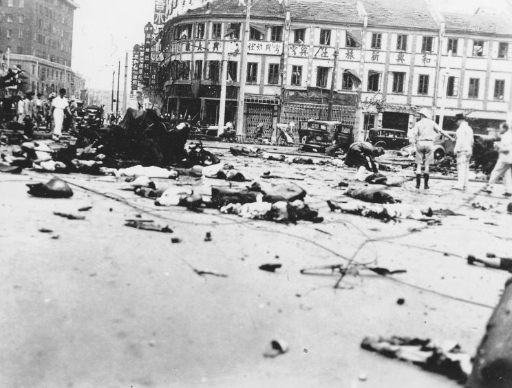 August 1945: Some of the devastation in Hong Kong the crew of HMS Euryalus found when they went ashore. |