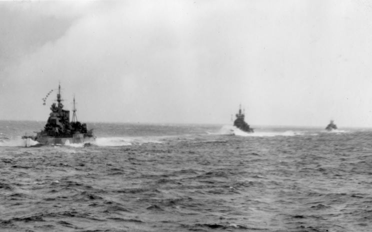 HMS Renown and HMS King George V seen from HMS Victorious. |