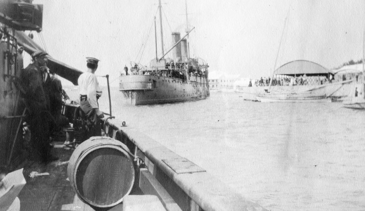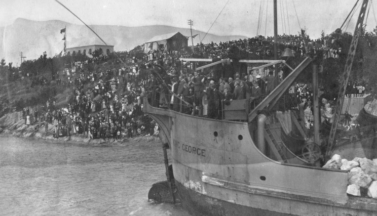 Dredger King George leading with Govenor Sir George Bullock on board.